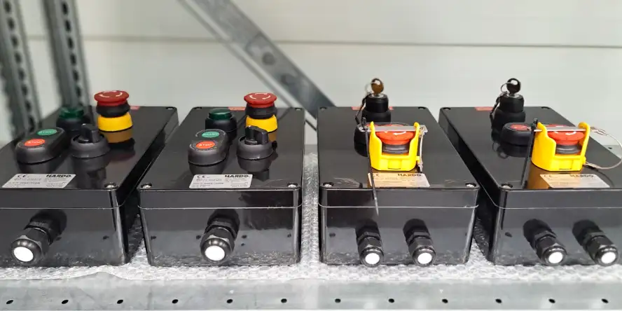 Stacje sterujące serii HCS1P mogą być wyposażone w szeroką gamę certyfikowanych komponentów wiodących światowych producentów. Wśród tych komponentów znajdują się przyciski, lampki kontrolne i sygnalizacyjne, grzybkowe przyciski awaryjne, wyłączniki automatyczne, przekaźniki, odłączniki i urządzenia pomiarowe.